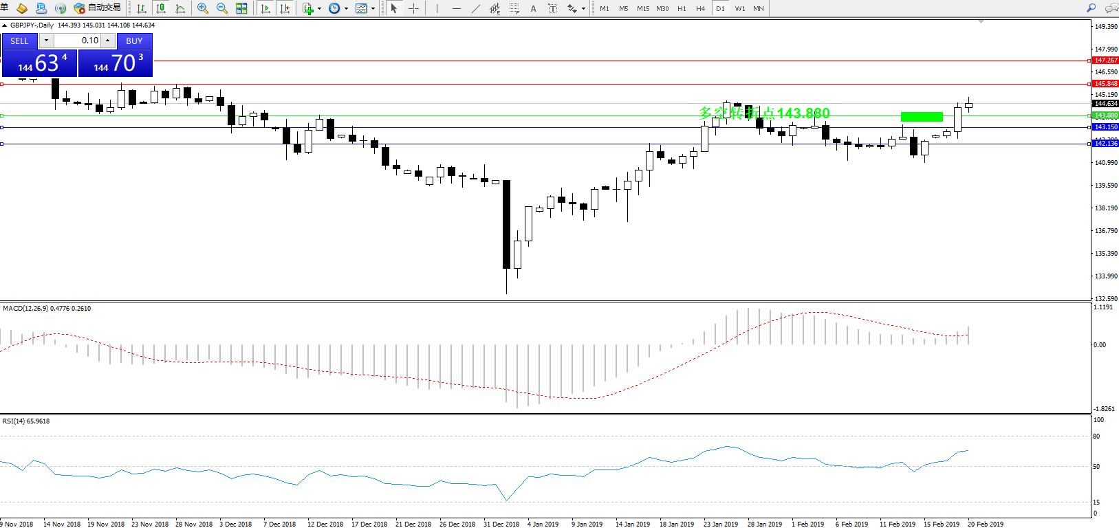交易策略:143.880上方看涨,目标145.848147.267