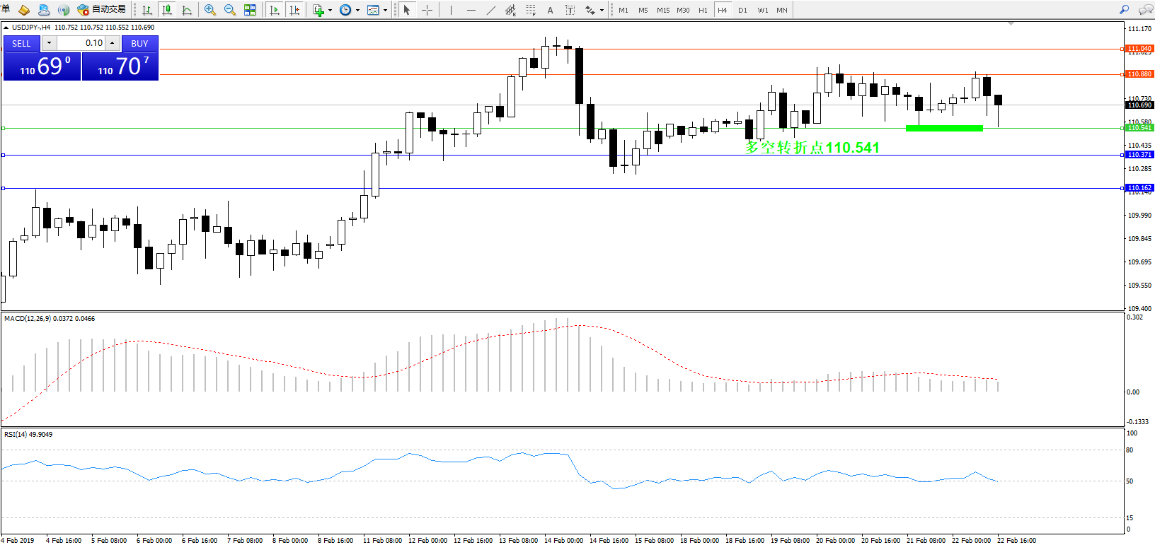 交易策略:110.541上方看涨,目标110.880111.040