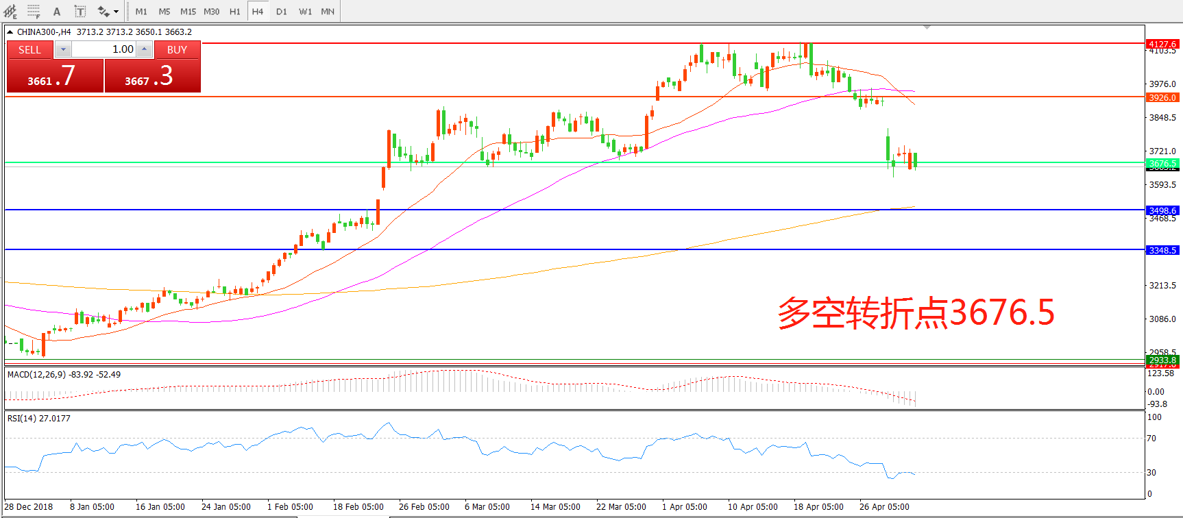 多空转折点:3676.50