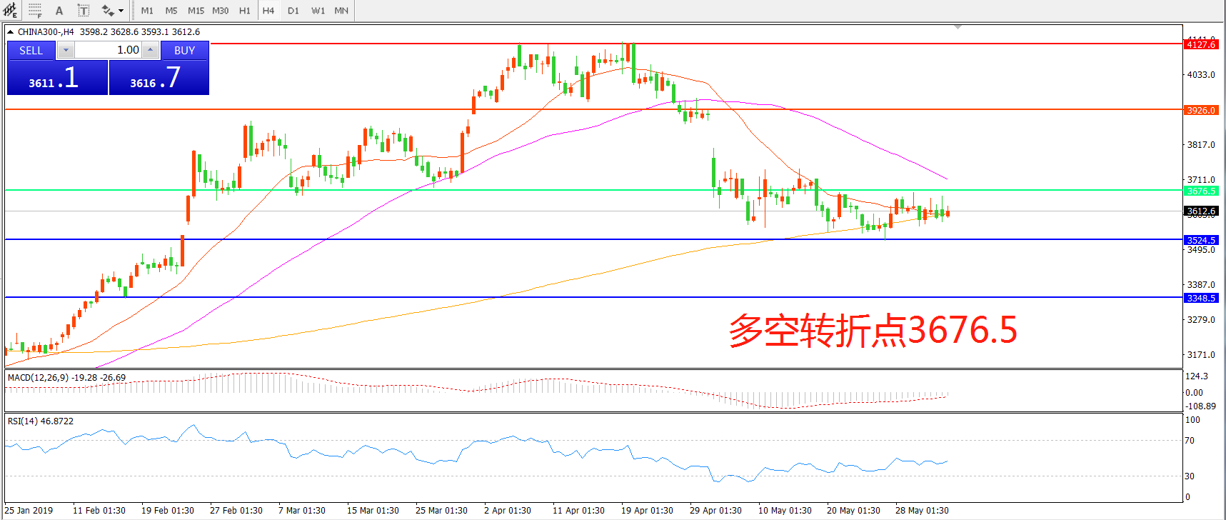 沪深300指数CHINA300 4小时图