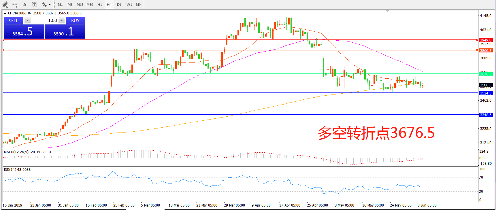 沪深300指数CHINA300 4小时图