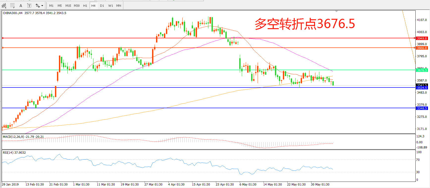 沪深300指数CHINA300 4小时图