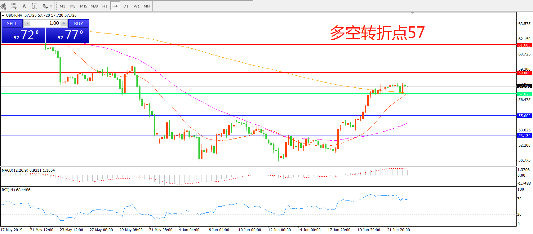 交易策略:在57.00之上看涨,目标59.00    61.50