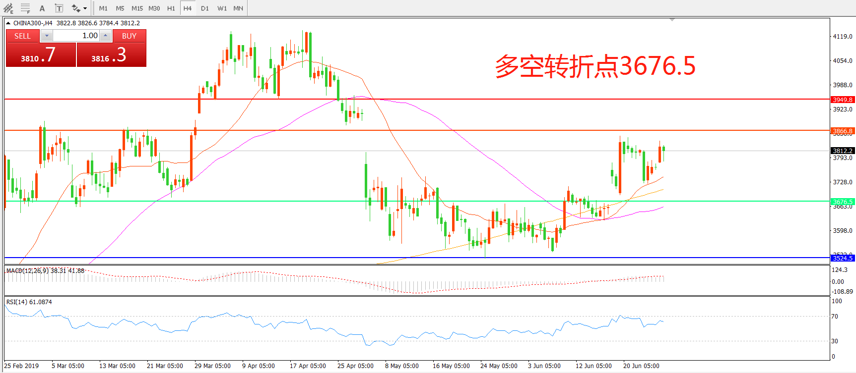 多空转折点:3676.50