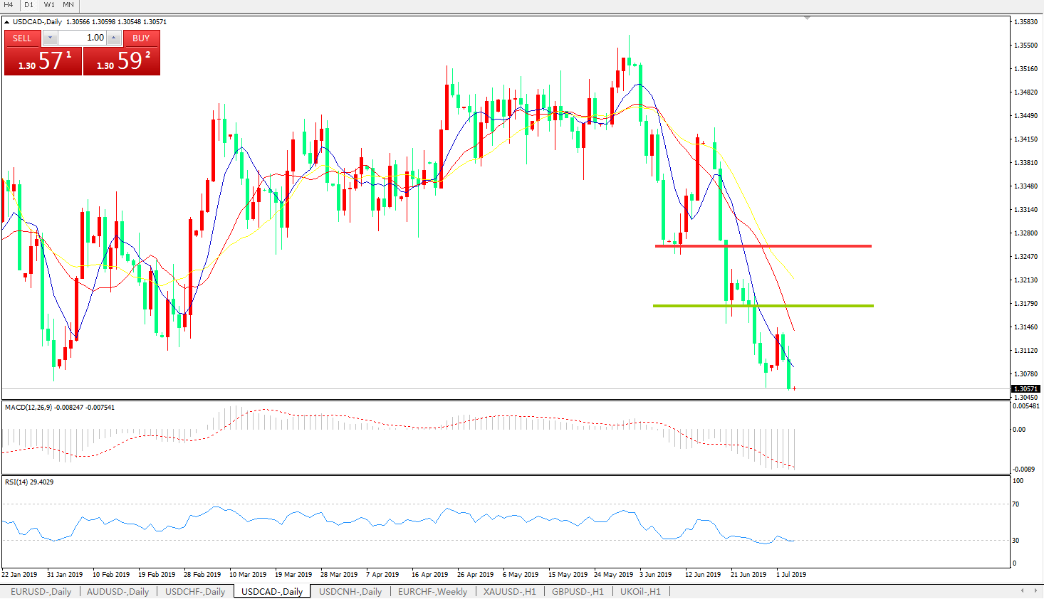 技术面简析:日线图均线有序空头排列,价格持续下挫,MACD在0轴下方运行且动能柱继续放量,RSI再度走低触及超卖区域,短线汇价跌破前低,预计将进一步下行,但须警惕超跌反弹。