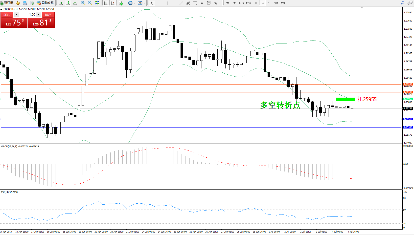 交易策略:1.25955下方看跌,目标1.25516、1.25338