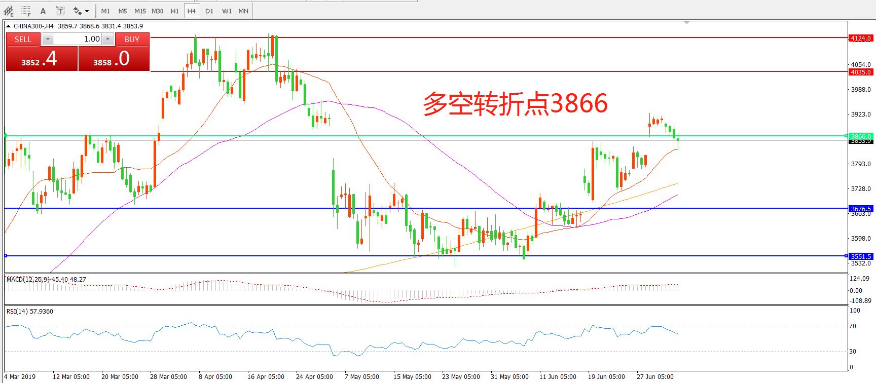 沪深300指数CHINA300 4小时图