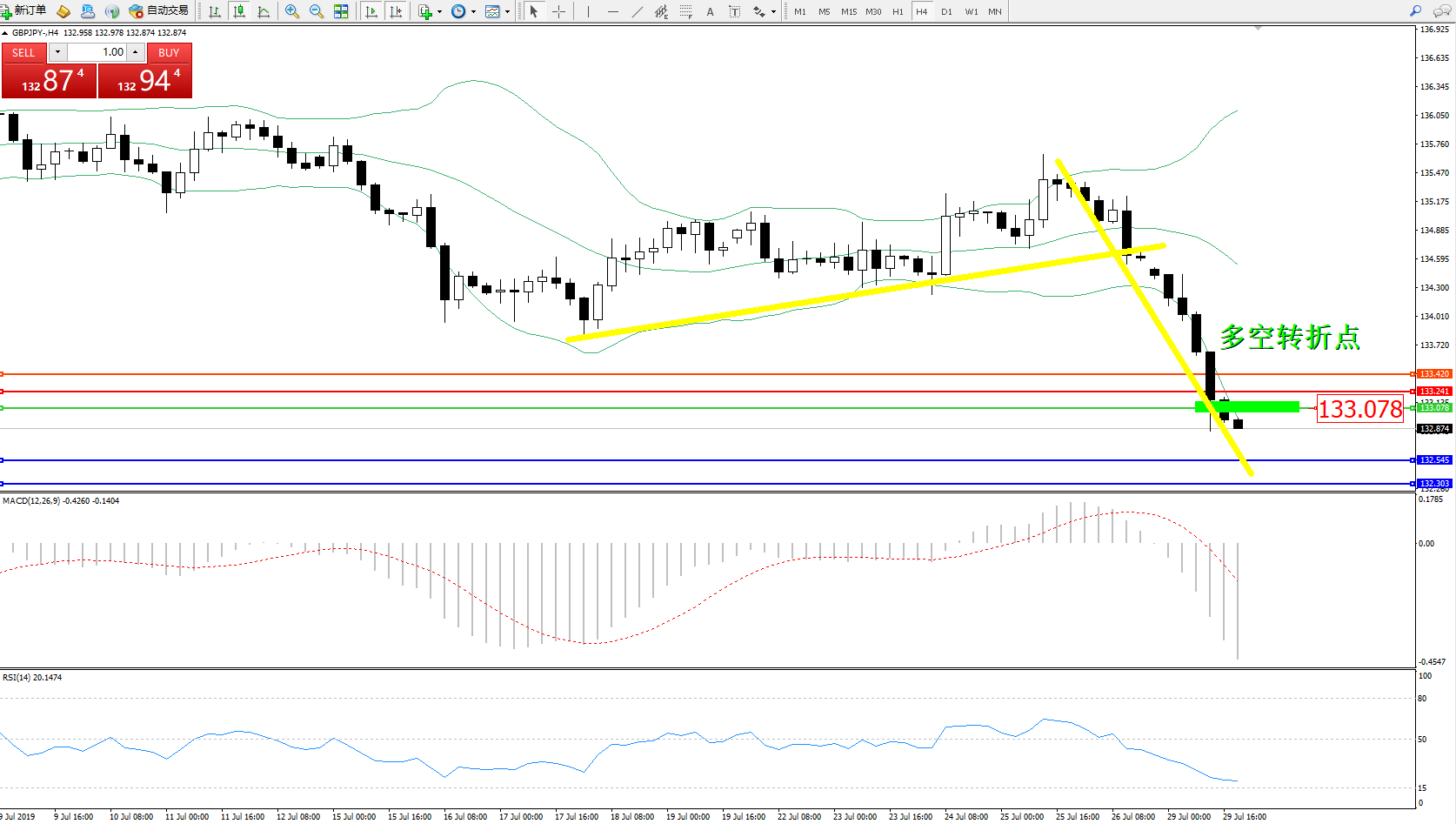 交易策略:133.078下方看跌,目标132.545132.303