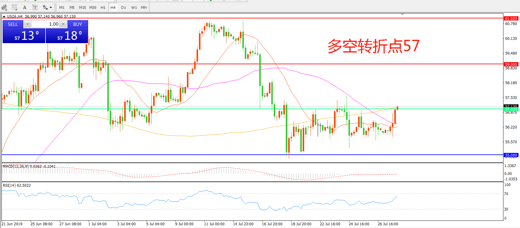 多空转折点:57.00