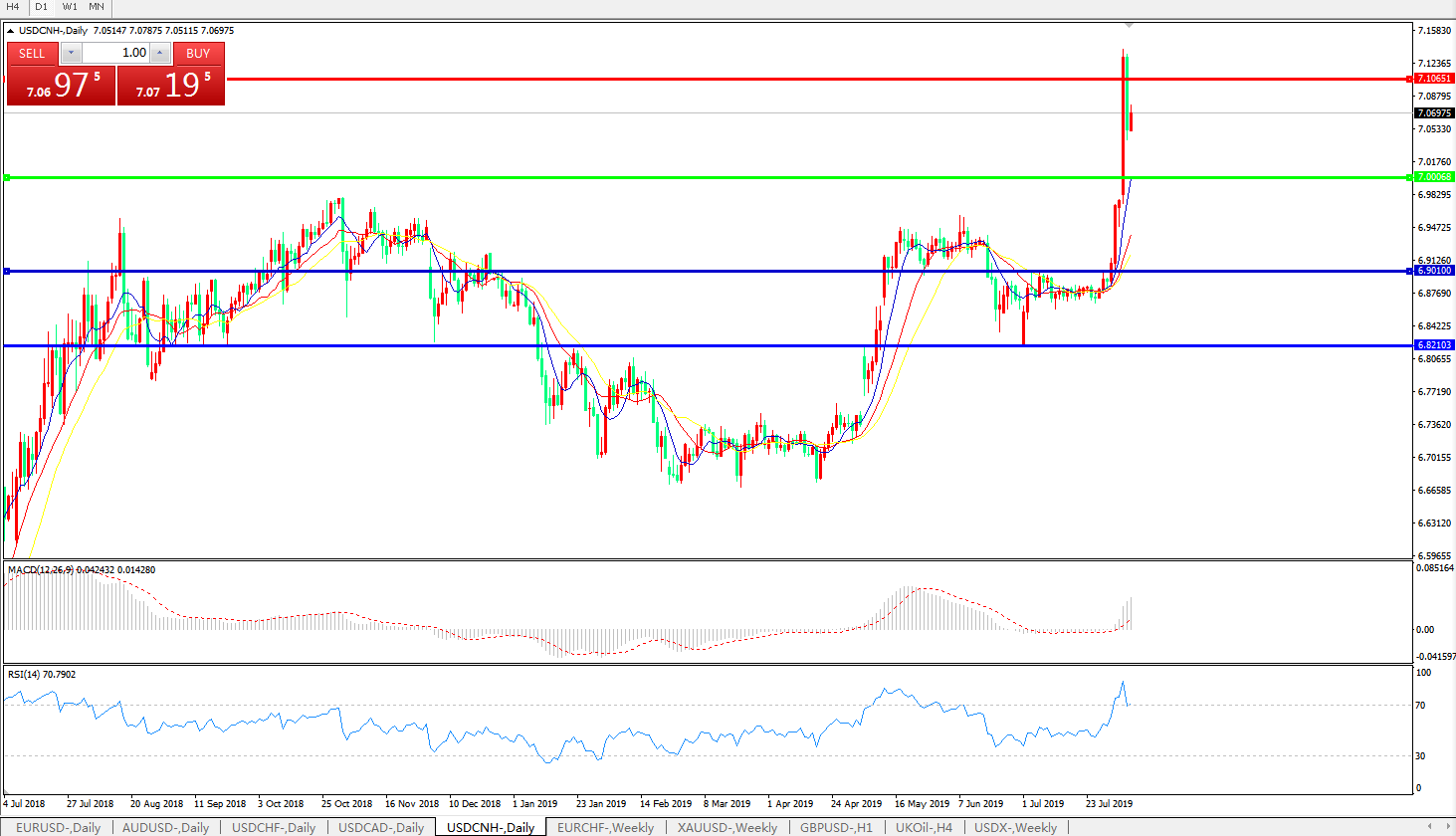 美元兑人民币USDCNH   日线图: