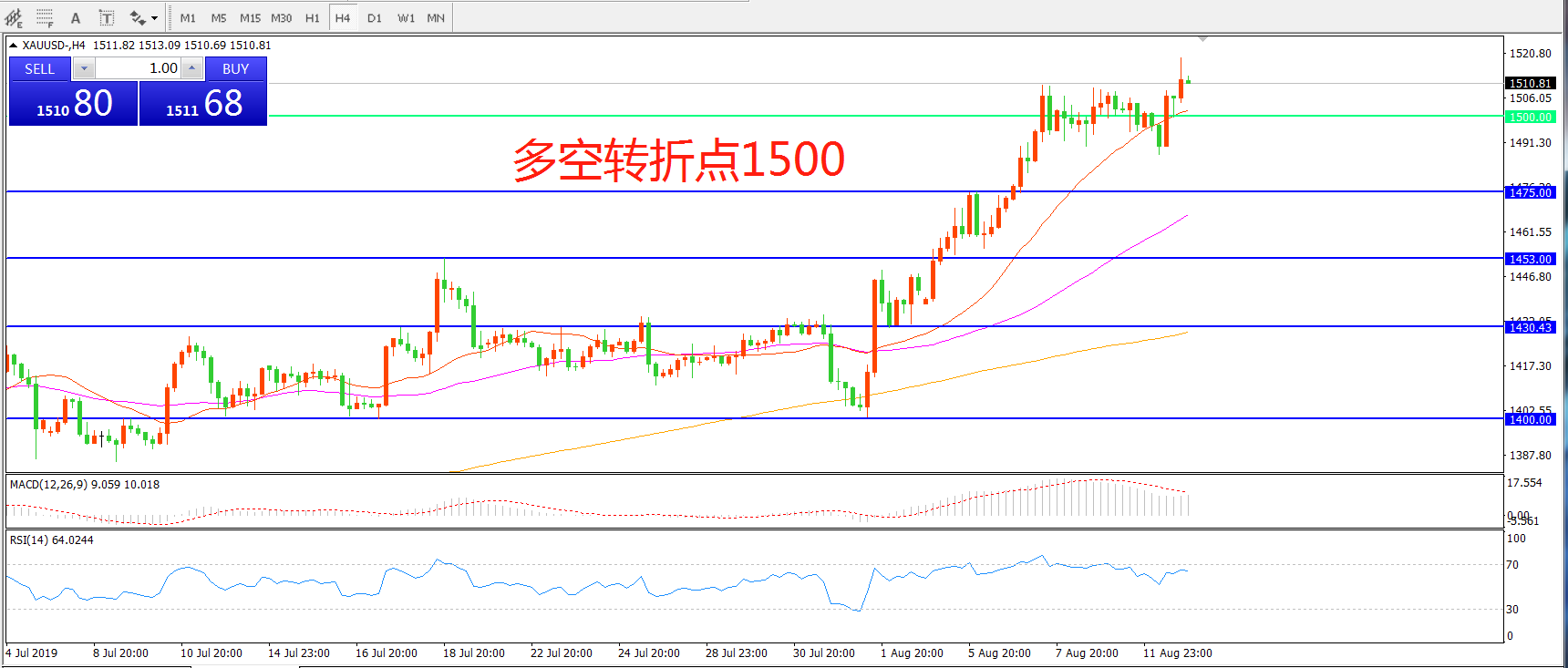 多空转折点:1500.00