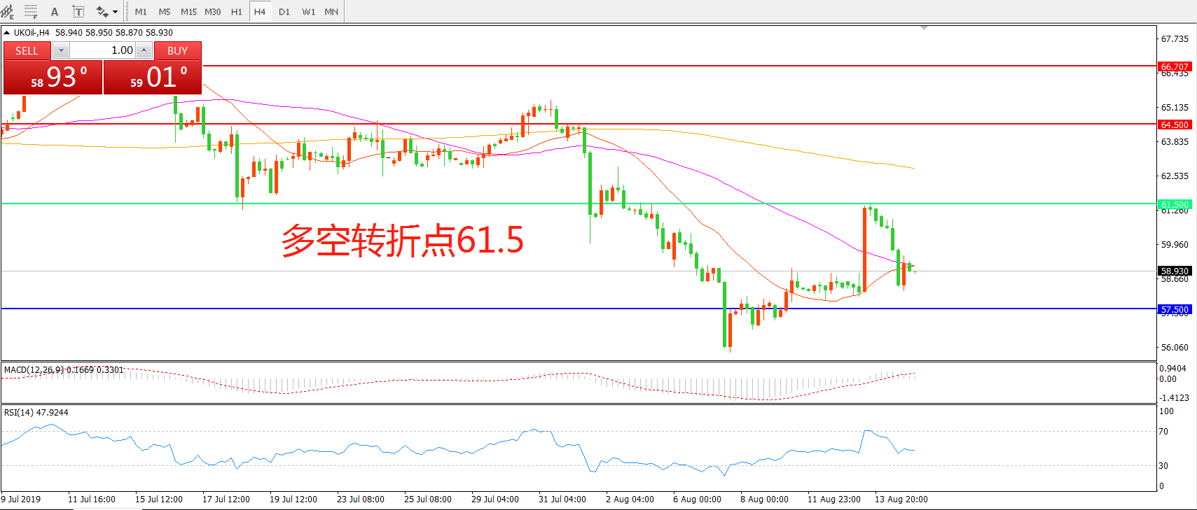 交易策略:在61.50之下看跌,目标57.50   53.00