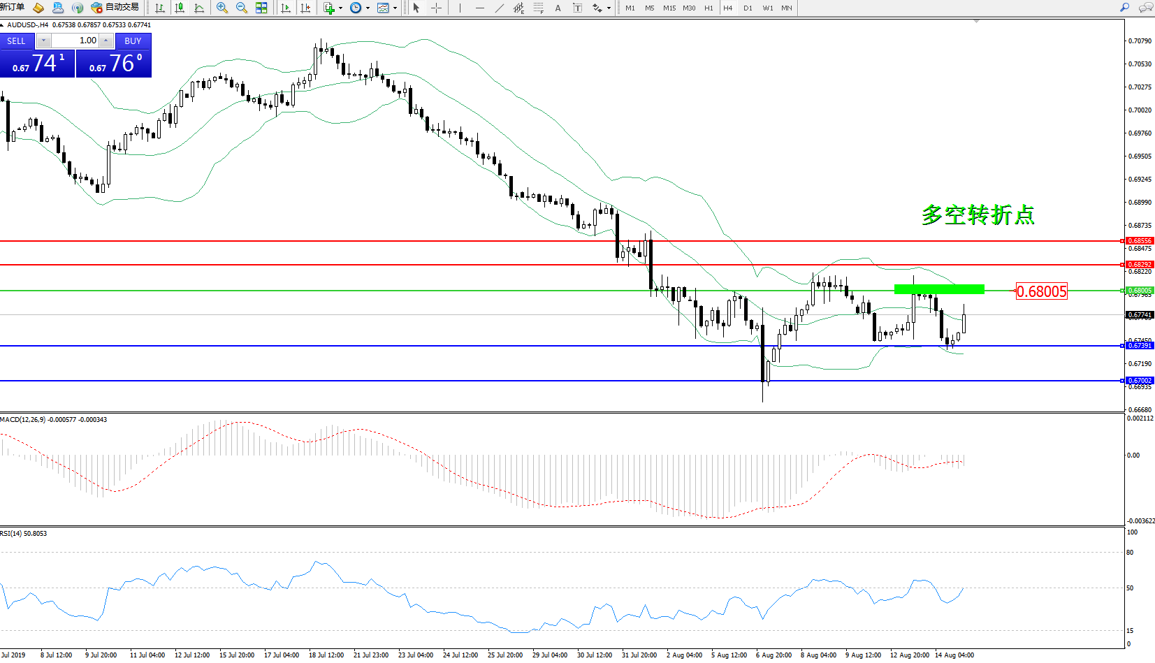 备选策略:0.68005上方看涨,目标0.68292、0.68556