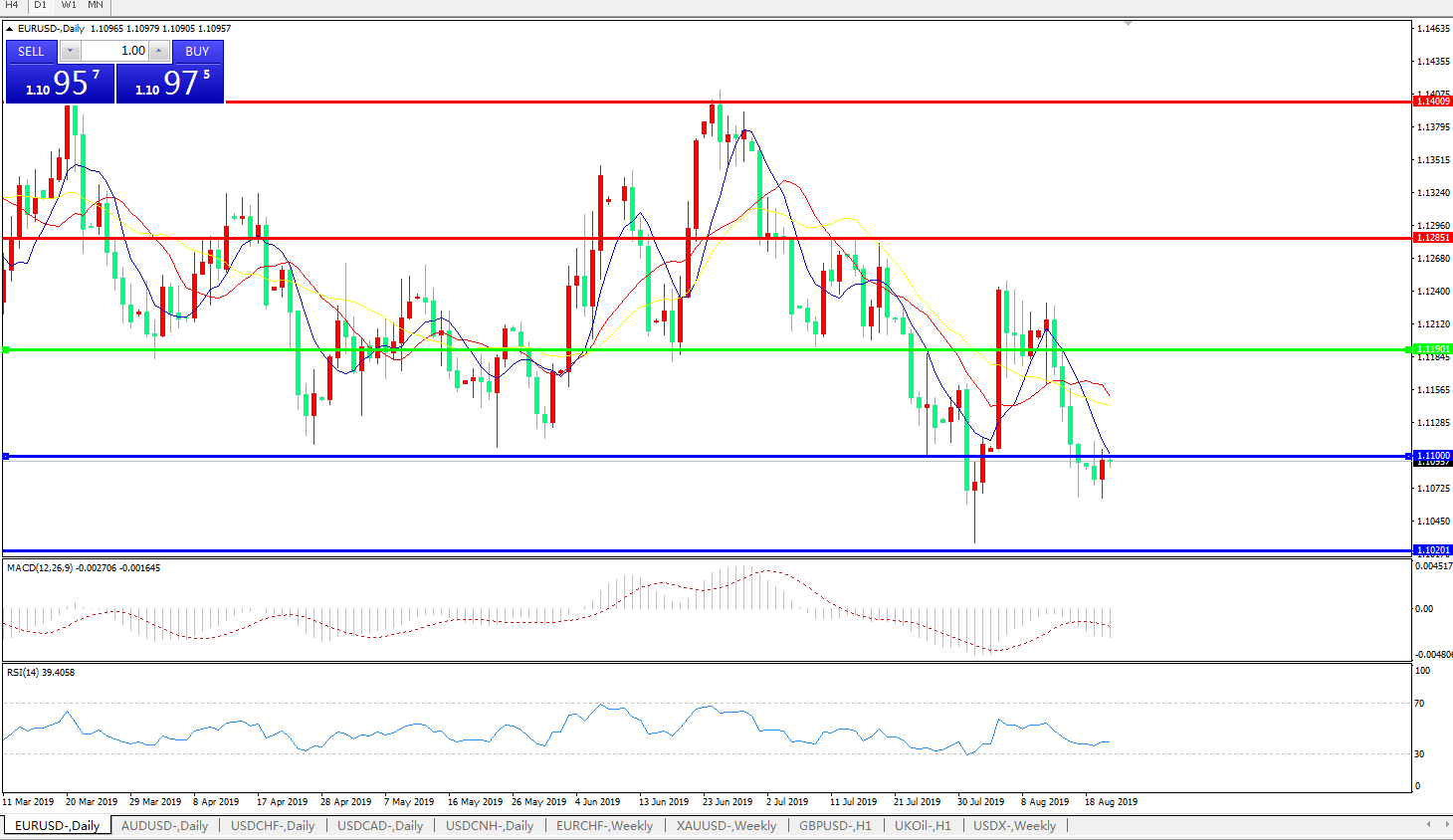 技术面简析:日图均线呈有序下行态势,汇价昨日小幅收涨但整体依旧弱势,MACD运行于0轴下方且动能柱延续放量态势,RSI止跌走缓,预计短期汇价存整理修正需求,不排除局部小幅度反弹,中期汇价需关注前低1.10附近支撑是否持续有效。