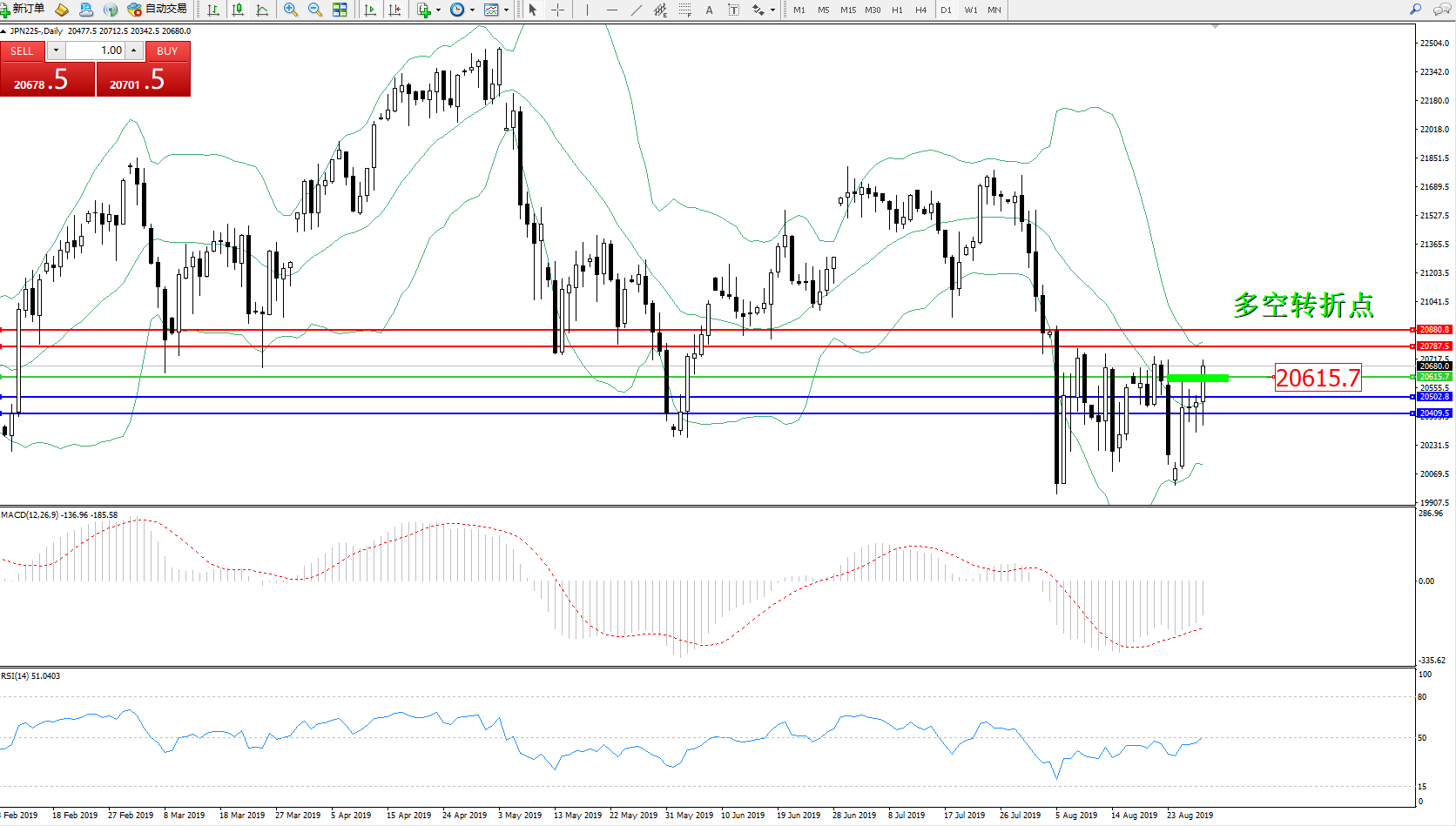 技术点评:低位宽幅震荡平移已有多日,处于布林带指标中上轨区间震荡,有持续上行态势,MACD指标空头区域缓慢上移中,RSI指标空头区域上行至50均衡线附近压制;