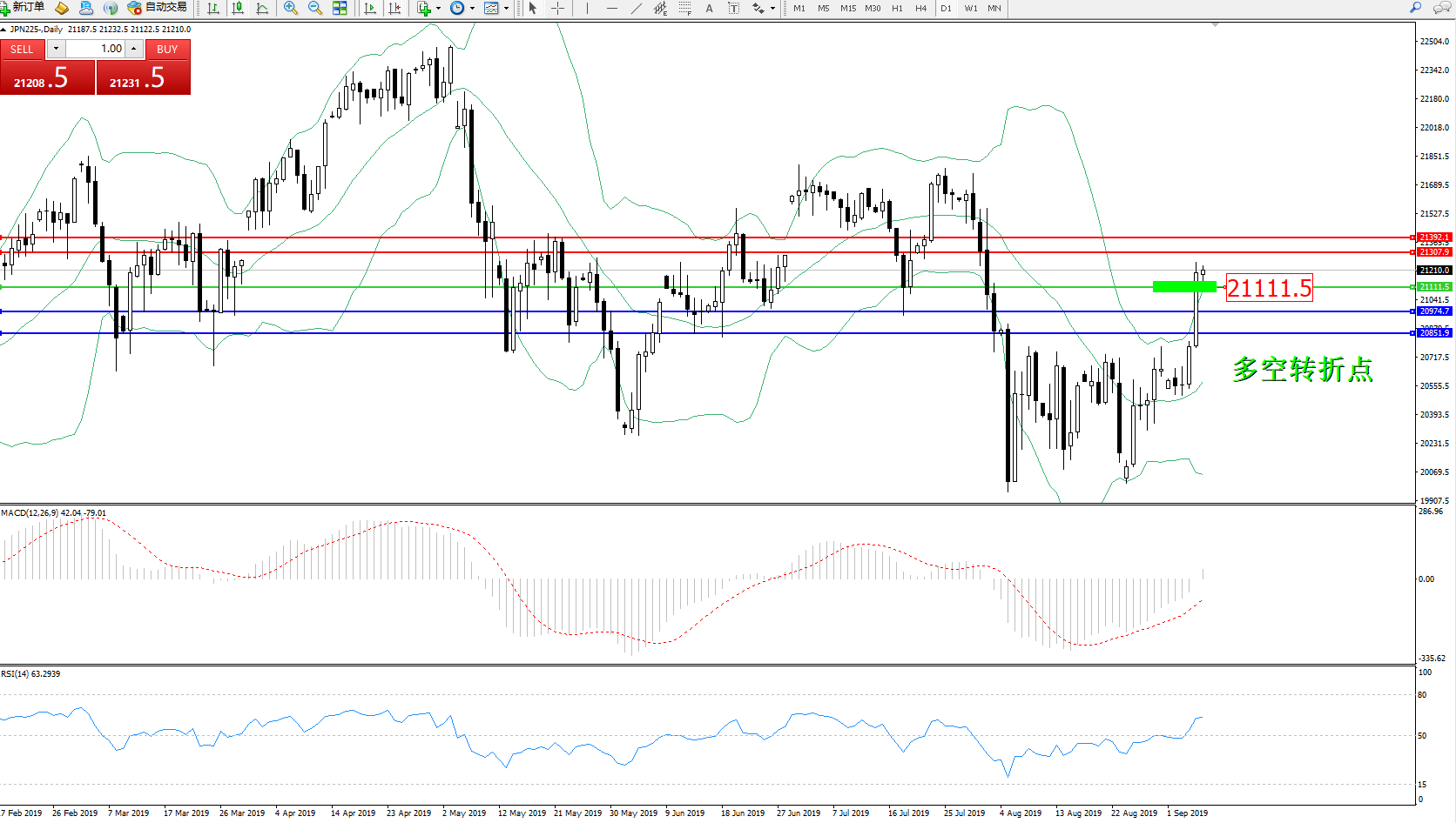 日经225指数96日(周五)收盘上涨43.16点,涨幅0.20%,报21165.50点。日本7月家庭支出连续八个月上升,然升速放缓;这给国内消费敲响了警钟,日本已为外部需求疲弱所苦。全球放缓与贸易僵局的相关风险,正在威胁到经济增长,并加重了日本央行扩大刺激的压力。周五数据显示,日本7月所有家庭支出较上年同期上升0.8%,不过增速逊于6月的2.7%,但7月的上升仍创下了2000年有可比数据以来最长的一段扩张时间,并且表明在下月将消费税从8%调升至10%之前,内需仍保持韧性。