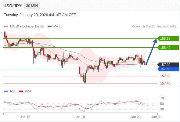在 157.80 之上,看涨,目标价位为 158.40 ,然后为 158.65 。