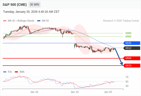 美国标普500指数期货 (H6) 当日内: 短期关键阻力位在6935。