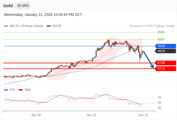 在 4848 之下,看跌,目标价位为 4748 ,然后为 4714 。