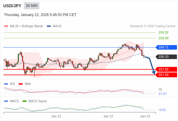 美元/日元 当日内 : 看跌,在 158.71 之下。