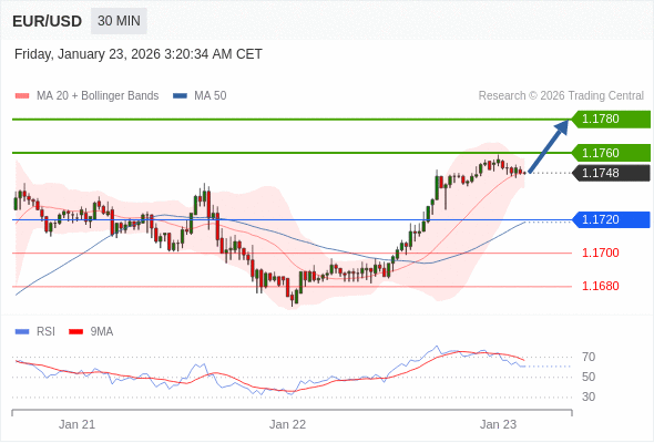 在 1.1720 之上,看涨,目标价位为 1.1760 ,然后为 1.1780 。