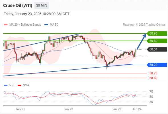 在 59.20 之上,看涨,目标价位为 60.50 ,然后为 60.90 。