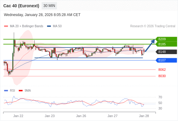 在 8107 之上,看涨,目标价位为 8185 ,然后为 8209 。