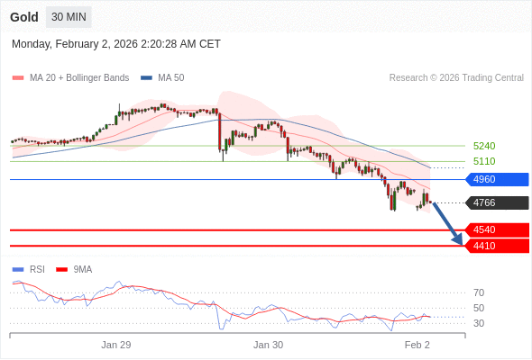 在 4960 之下,看跌,目标价位为 4540 ,然后为 4410 。