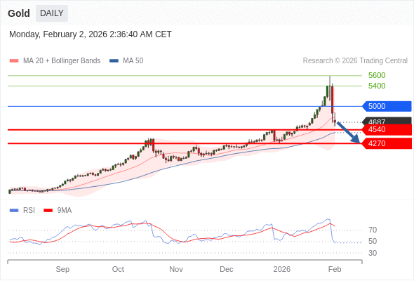 交易策略: 在 5000 之下,看跌,目标价位为 4540 ,然后为 4270 。