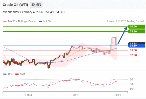 在 64.10 之上,看涨,目标价位为 65.90 ,然后为 66.50 。