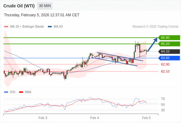 在 63.60 之上,看涨,目标价位为 65.20 ,然后为 65.90 。