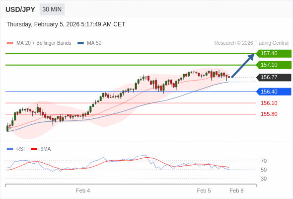 在 156.40 之上,看涨,目标价位为 157.10 ,然后为 157.40 。