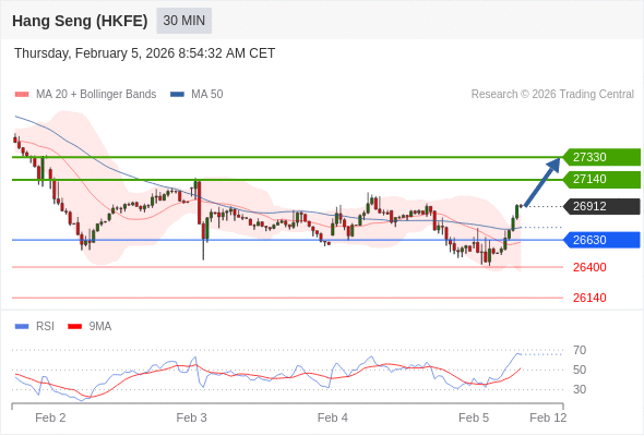 在 26630 之上,看涨,目标价位为 27140 ,然后为 27330 。