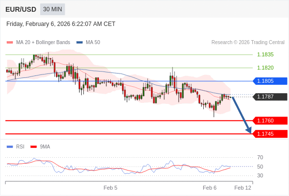 在 1.1805 之下,看跌,目标价位为 1.1760 ,然后为 1.1745 。