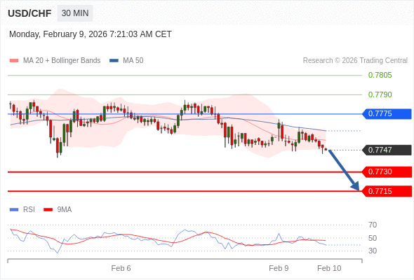 交易策略: 在 0.7775 之下,看跌,目标价位为 0.7730 ,然后为 0.7715 。