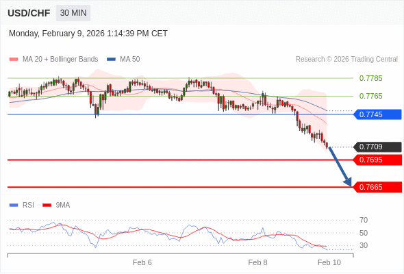在 0.7745 之下,看跌,目标价位为 0.7695 ,然后为 0.7665 。
