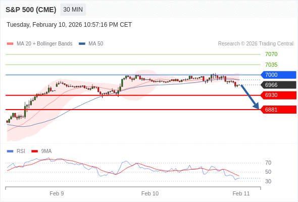 在 7000 之下,看跌,目标价位为 6930 ,然后为 6881 。