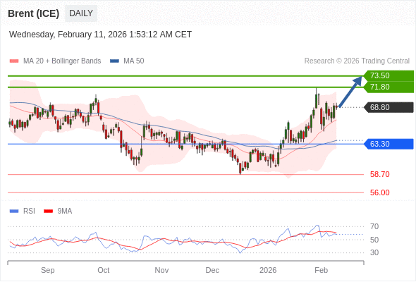 在 63.30 之上,看涨,目标价位为 71.80 ,然后为 73.50 。