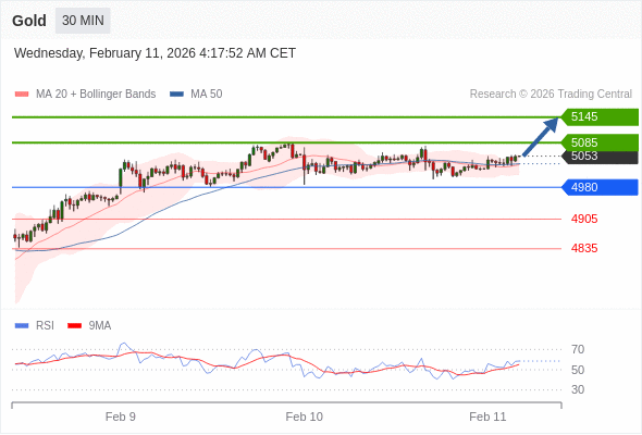 在 4980 之上,看涨,目标价位为 5085 ,然后为 5145 。