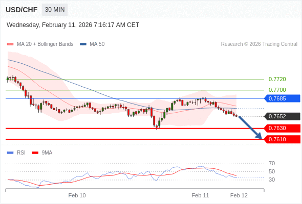 在 0.7685 之下,看跌,目标价位为 0.7630 ,然后为 0.7610 。