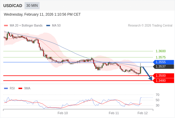 在 1.3555 之下,看跌,目标价位为 1.3500 ,然后为 1.3480 。