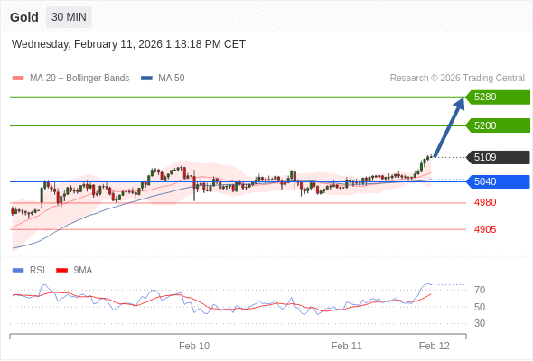 在 5040 之上,看涨,目标价位为 5200 ,然后为 5280 。