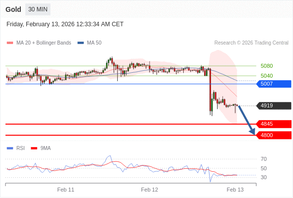 在 5007 之下,看跌,目标价位为 4845 ,然后为 4800 。