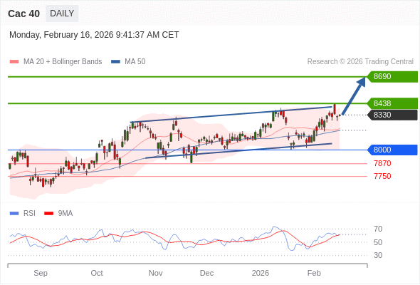 Cac 40 短线: 期待8438。