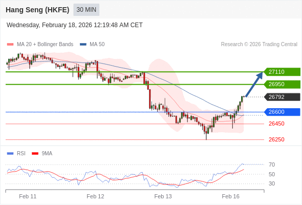 在 26600 之上,看涨,目标价位为 26950 ,然后为 27110 。
