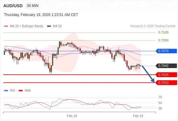 在 0.7070 之下,看跌,目标价位为 0.7025 ,然后为 0.7010 。