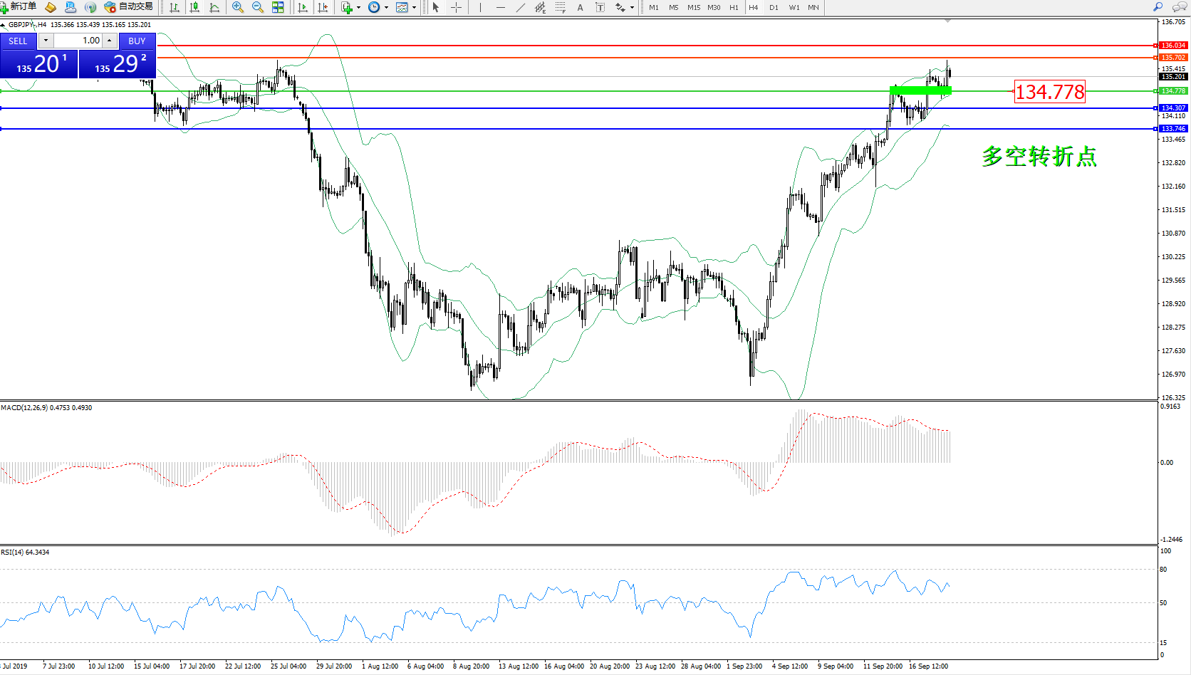 交易策略:134.778上方看涨,目标135.702136.034