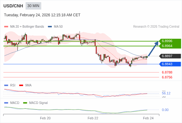 替代方案: 在6.8843以下,期待6.8788和6.8756。