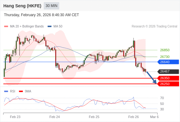 在 26640 之下,看跌,目标价位为 26350 ,然后为 26250 。