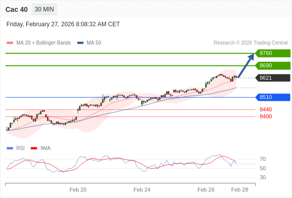 Cac 40 当日内: 上升趋势。